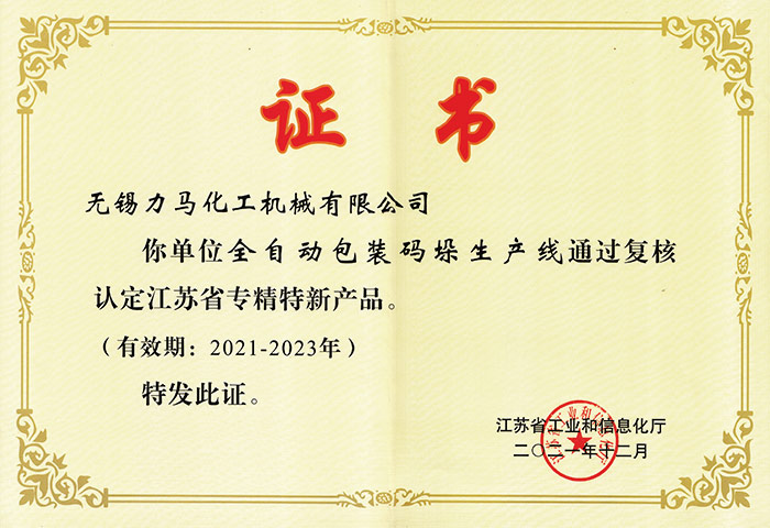 江蘇省專精特新產品證書